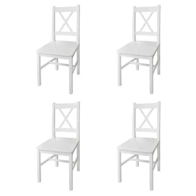 Ta komplet 4 lesenih jedilnih stolov se ponaša s preprosto in elegantno obliko. Odlično se bo podal v vašo jedilnico ali kuhinjo.