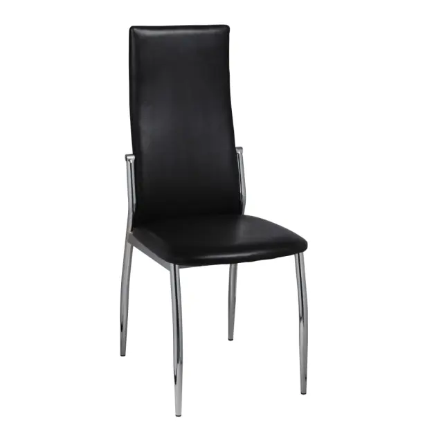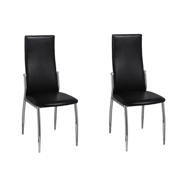 Ta 2 sodobna jedilna stola se ponašata z ergonomsko obliko, ki skrbi za večje udobje. Ta dva udobna jedilna stola imata visokokakovostno in robustno konstrukcijo. Noge so izdelane iz stabilnega kroma, sedež pa je izdelan iz trpežnega, sintetičnega usnja, ki omogoča preprosto čiščenje.
