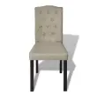 Ta komplet 4 elegantnih stolov "Chesterfield videza" se ponaša s klasično obliko in preprosto eleganco. Udobna obloga iz blaga zagotavlja udobno sedenje, stoli pa se bodo zagotovo odlično prilegali v različne notranje prostore.