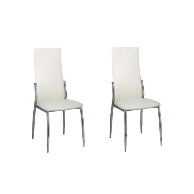 Ta 2 sodobna jedilna stola se ponašata z ergonomsko obliko, ki skrbi za večje udobje. Ta dva udobna jedilna stola imata visokokakovostno in robustno konstrukcijo. Noge so izdelane iz stabilnega kroma, sedež pa je izdelan iz trpežnega, sintetičnega usnja, ki omogoča preprosto čiščenje.