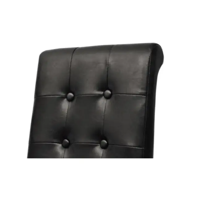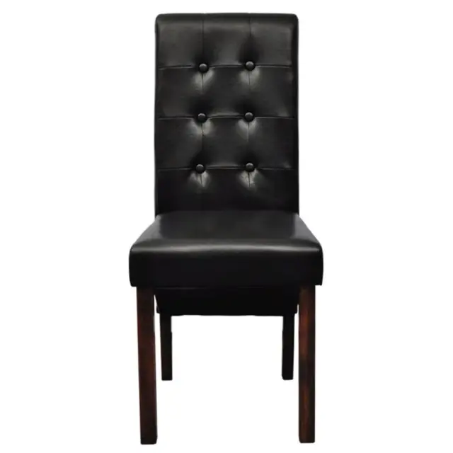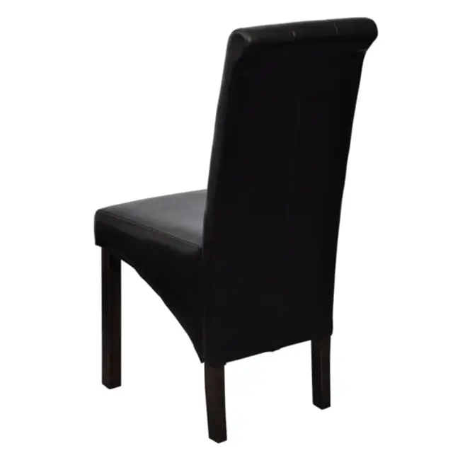 Ta komplet 2 udobnih jedilnih stolov ima ergonomsko oblikovane sedeže in naslonjala. Stola sta preprosta za vzdrževanje. Sedeži in naslonjala teh jedilnih stolov so oblečeni v sintetično usnje. Noge so izdelane iz lakiranega, temno rjavega masivnega lesa, robovi pa so zaobljeni za dodatno varnost.