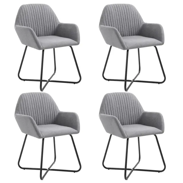 Dodajte svoji jedilnici ali dnevni sobi moderen pridih z našimi udobnimi in stabilnimi jedilnimi stoli! Ta komplet 4 jedilnih stolov iz kakovostnega blaga je estetsko in ergonomsko zasnovan tako, da bo predstavljal udoben dodatek za vaš dom.