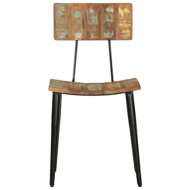 Ti stoli so izdelani iz trdnega predelanega lesa, zato je vsak kos pohištva edinstven in malo drugačen od ostalih. Pohištvo iz predelanega lesa ima značilnosti različnih tipov lesa, kot so tikovina, mangov les in akacijev les. Predelan les je trden, stabilen, trpežen in čudovit. Znaki obrabe in vidna struktura vzorcev lesa dajejo vsakemu kosu pohištva svojo lastno zgodovino in unikaten videz. Ta komplet stolov je izdelan popolnoma ročno, vsak korak v procesu izdelave pa je izveden z največjo mero previdnosti. Večbarvni premaz daje stolom spektakularen retro stil.
