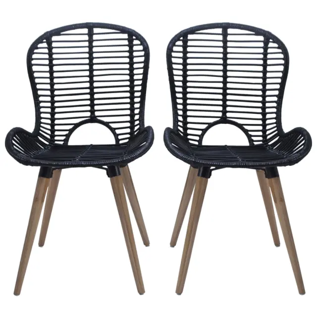Jedilni stoli - Vzorci stoli 2 kosa črni naravni ratan A239