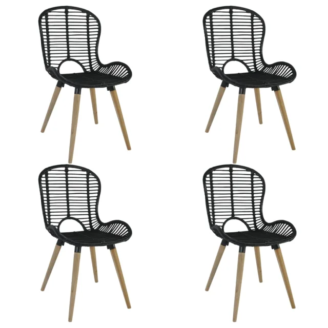 Jedilni stoli - Vzorci stoli 4 kosi črni naravni ratan A691