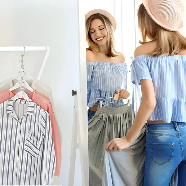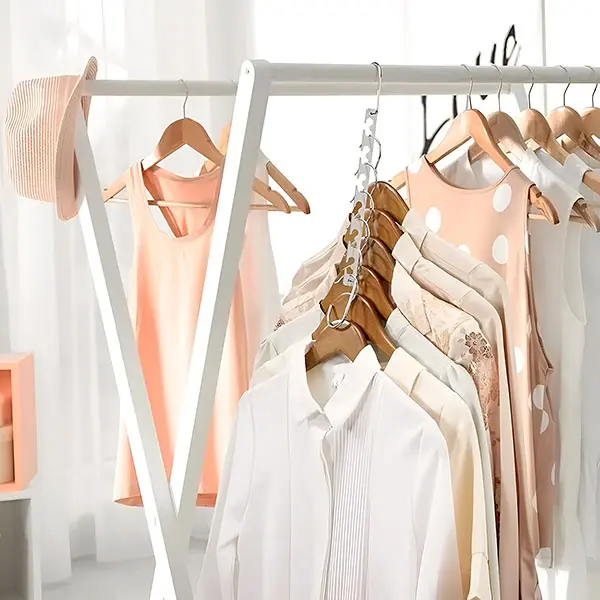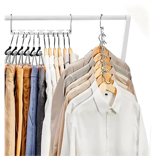 Naš obešalnik za oblačila zagotavlja preprosto rešitev, s katero bodo vaša oblačila lepo urejena in brez gub. Ta obešalnik zagotavlja, da ima vsak kos oblačila dovolj prostora, kar preprečuje neželene gube.