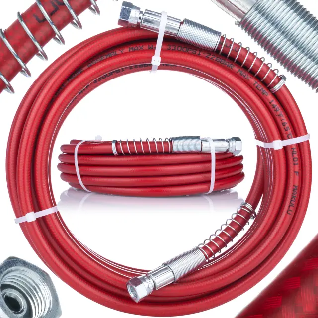 Rosfix Jeklen Cevni Povezovalnik za Barvni Agregat 10 m – Rdeč, 228 bar, 1/4'''' Navoj | Protiobrabna Zaščita