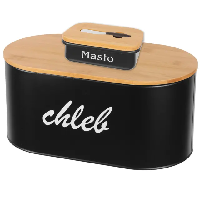 Kuhinjska posoda za kruh bo uporabna za vse, ki želite pravilno shranjevati kruh. Škatlo za kruh odlikuje zanimiv, moderen dizajn. Prevleka iz bambusovega lesa se lahko uporablja tudi kot deska za rezanje. Set vsebuje posodo za maslo s pokrovom iz bambusa in nož za maslo.