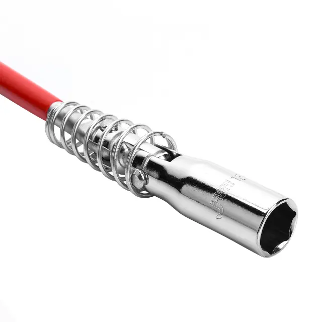 TRPEŽNO CR-V JEKLO: Izdelan iz hladno kovanega Cr-V legiranega jekla. Fleksibilna glava je toplotno obdelana za večjo trdnost in vzdržljivost. Kromiran premaz zagotavlja odpornost proti rji in koroziji. ERGONOMSKI T-ROČAJ PROTI DRSENJU: Mehko prevlečen ročaj v obliki črke T zagotavlja boljši in varnejši oprijem ter zmanjšuje utrujenost, kar je še posebej pomembno pri dolgotrajni uporabi. FLEKSIBILNA GLAVA: Zasnova s 360-stopinjsko rotacijo omogoča prilagajanje različnim kotom za delo na različnih vrstah avtomobilov. Zagotavlja boljšo vzvodno moč na težko dostopnih mestih. VZMETNA OBREMENITEV IN GUMIJASTI VLOŽEK: Visoko zmogljiva vzmet je toplotno obdelana za boljšo učinkovitost in ohranja glavo stabilno. Vgrajen gumijasti vložek varno drži svečko, kar omogoča enostavno odstranitev brez izgub. UNIVERZALNO ROČNO ORODJE: Široko uporabno za enostavno odstranitev in namestitev svečk v avtomobilih ali motorjih. Primerno za večino modelov. Velikost: 16 mm (5/8'').
