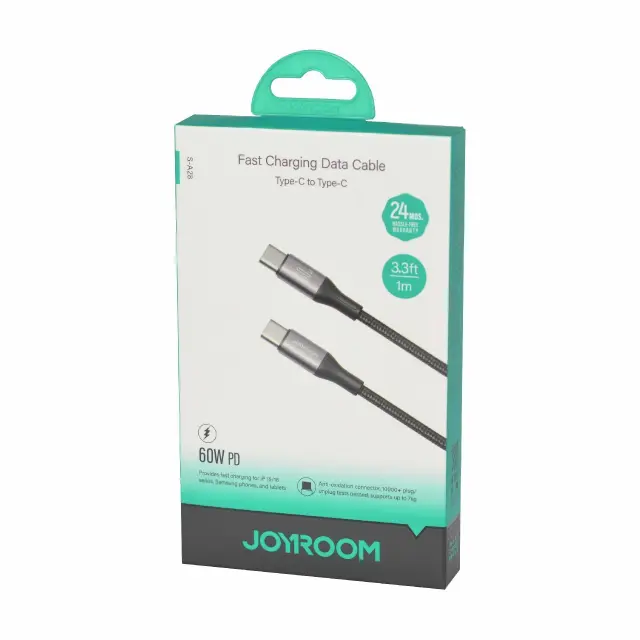 Paket vsebuje: Joyroom kabel USB C-C 1m 60W črn pleten S-A28