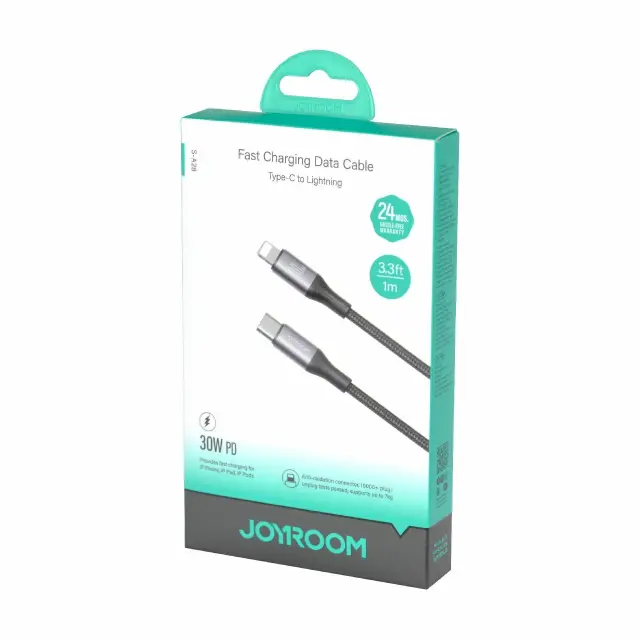 Joyroom S-A28 je 1-meter dolg USB TipC na Lightning kabel, ki omogoča hitro polnjenje z močjo do 30W ter prenos podatkov s hitrostjo do 480 Mb/s. Ima trpežen pleten ovoj, ki nudi večjo odpornost proti obrabi in zapletanju. Zanesljiv za uporabo doma, v pisarni ali na poti.