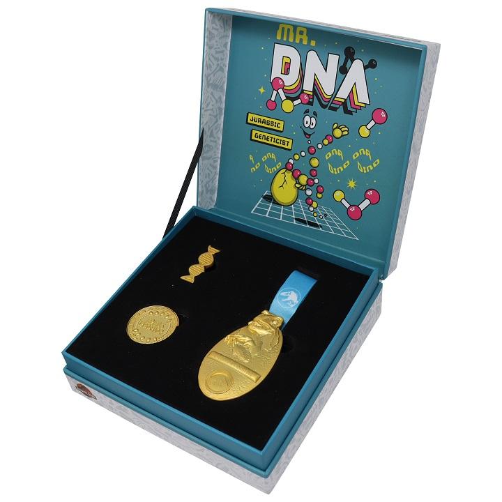 An-World Service Nagrada Genetics Division of INGEN. Preživel si 10 let! Vključuje 24-k pozlačen kovanec INGEN, 24-k pozlačeno značko z žebljičkom in 24-k pozlačeno medaljo za 10 let službe. Dobavljeno tudi z obvestilom INGEN.
