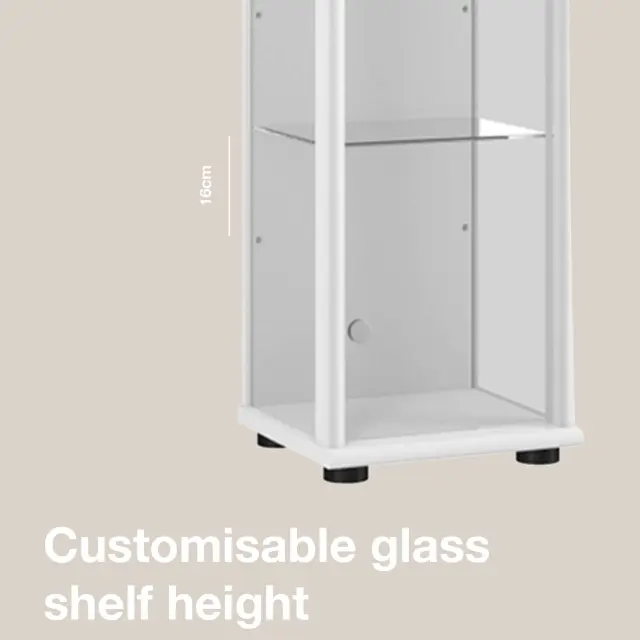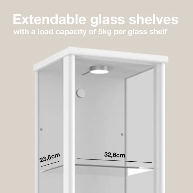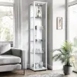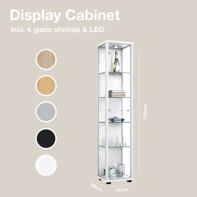 K-Möbel steklena vitrína stoječa (176x37x33cm) - Made in Germany - vitrinasta omara bela s 4 nastavljivimi steklenimi policami & LED
