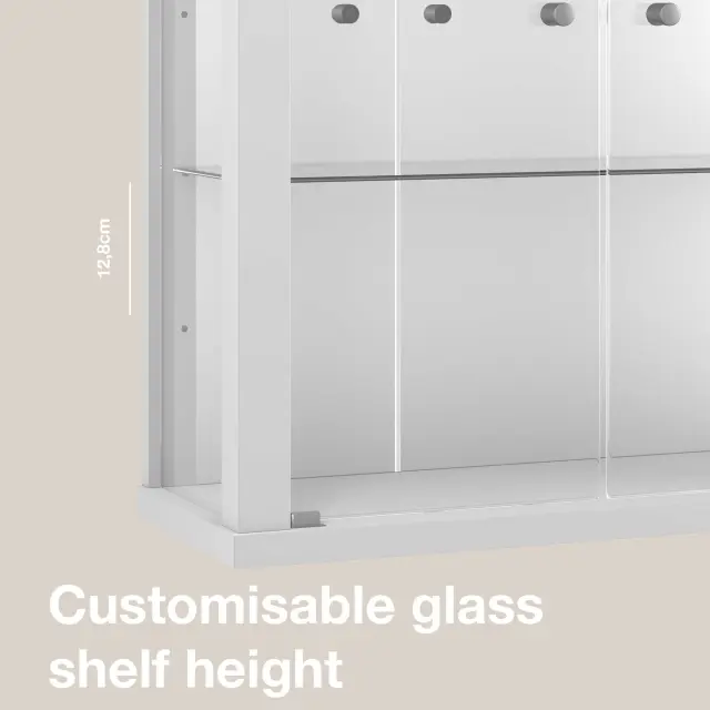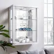 K-Möbel stenska vitrína (80x60x25cm) - Made in Germany - steklena vitrína viseča z 2 nastavljivima steklenima policama iz ESG, ogledalo & LED v be