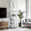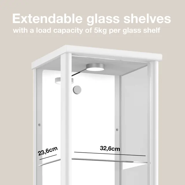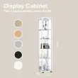 K-Möbel stoječa vitrína (176x37x33cm) - Made in Germany - vitrinasta omara bela s 4 nastavljivimi steklenimi policami, ogledalo & LED