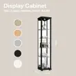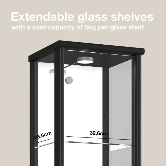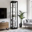 K-Möbel stoječa vitrína (176x37x33cm) - Made in Germany - vitrinasta omara črna s 4 nastavljivimi steklenimi policami, ogledalo & LED