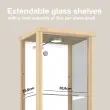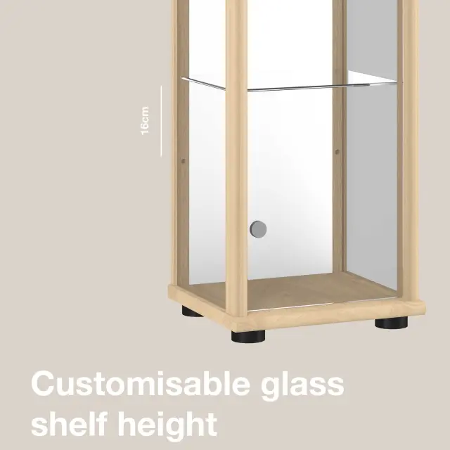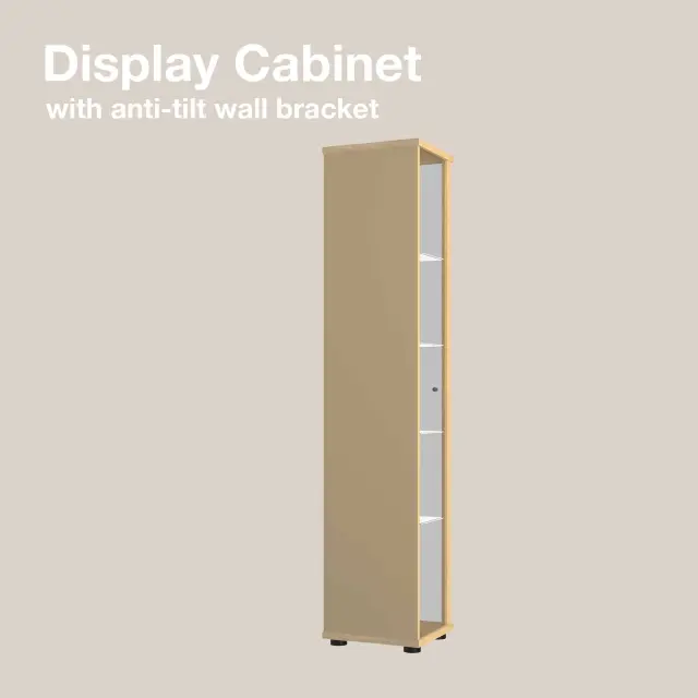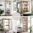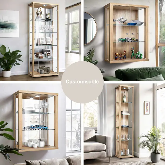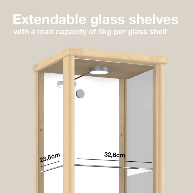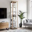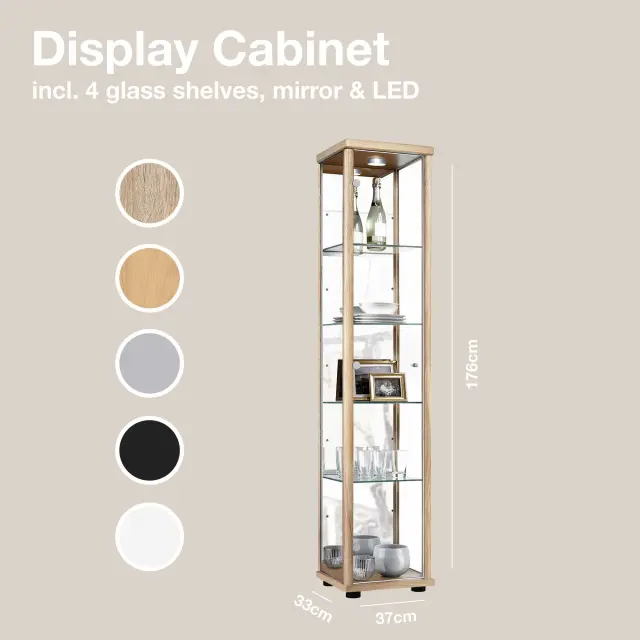 K-Möbel stoječa vitrína (176x37x33cm) - Made in Germany - vitrinasta omara bukev s 4 nastavljivimi steklenimi policami, ogledalo & LED
