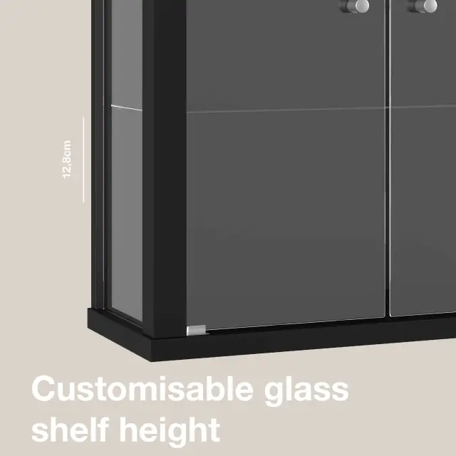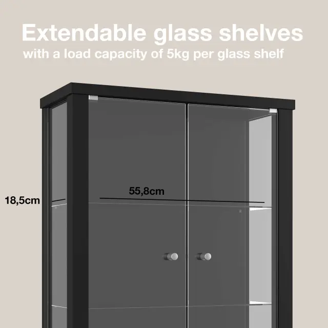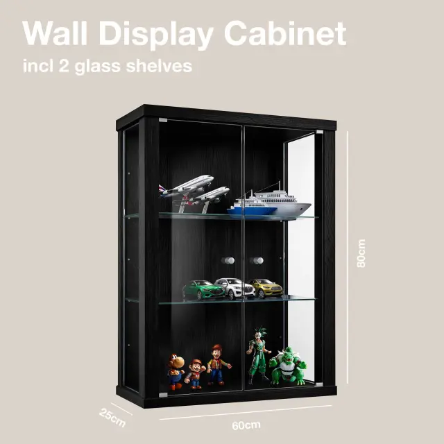 K-Möbel viseča vitrína steklena (80x60x25cm) - Made in Germany - steklena vitrína viseča z 2 nastavljivima steklenima policama iz ESG v črni