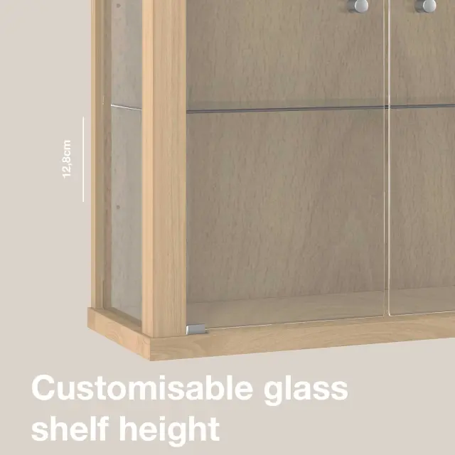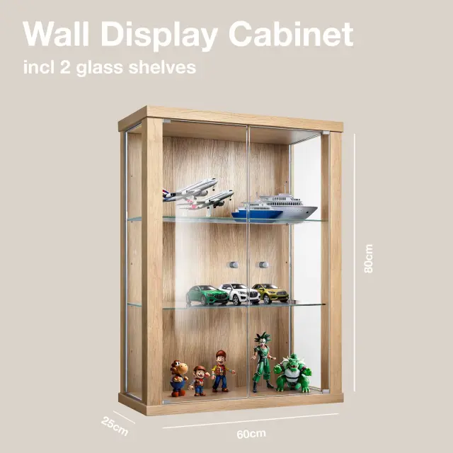 K-Möbel viseča vitrína steklena (80x60x25cm) - Made in Germany - steklena vitrína viseča z 2 nastavljivima steklenima policama iz ESG v bukev