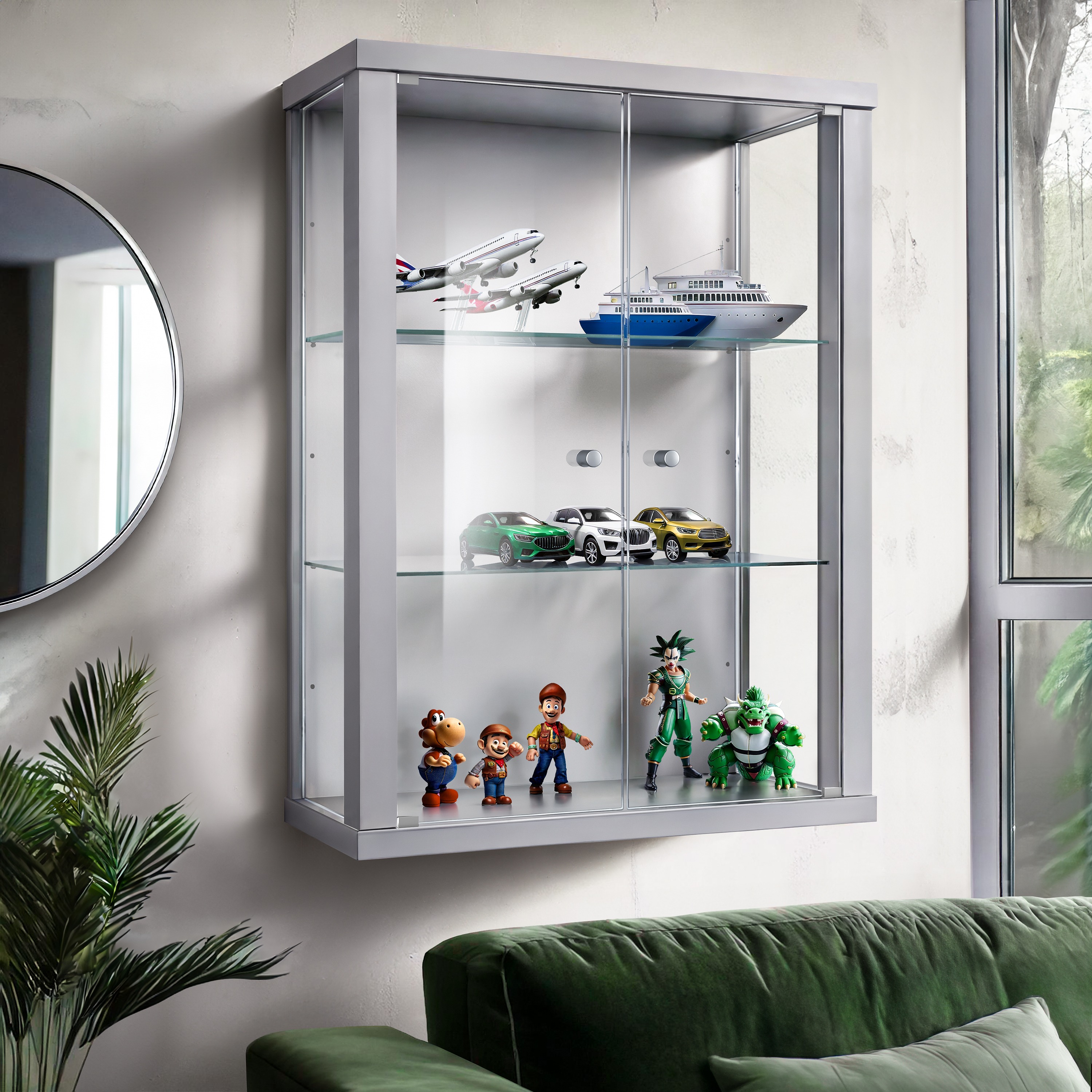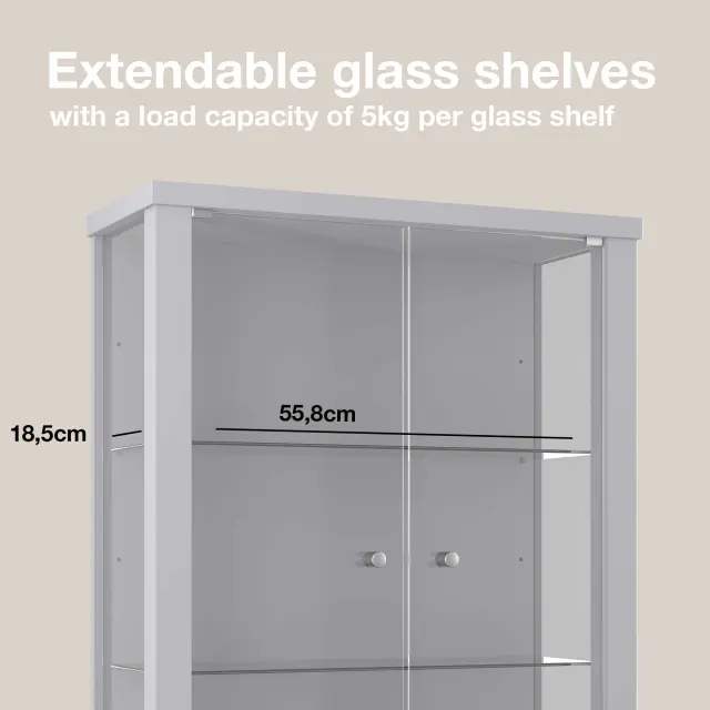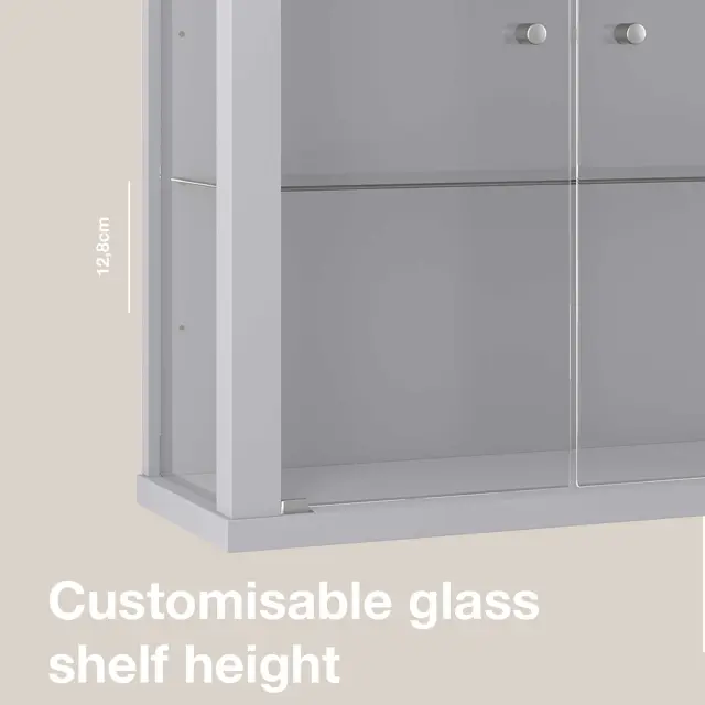 K-Möbel viseča vitrína steklena (80x60x25cm) - Made in Germany - steklena vitrína viseča z 2 nastavljivima steklenima policama iz ESG v srebrni