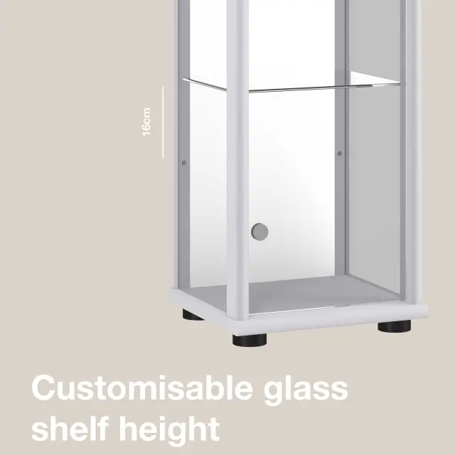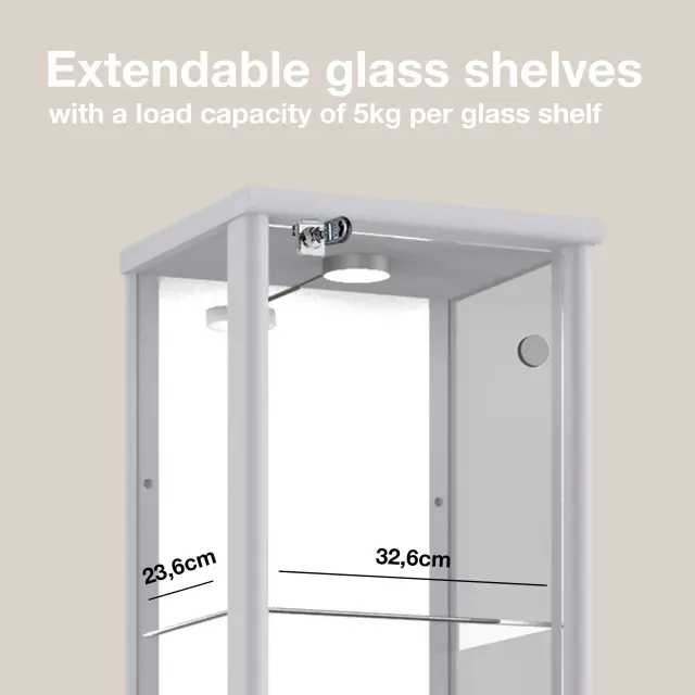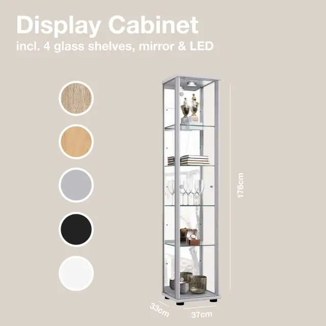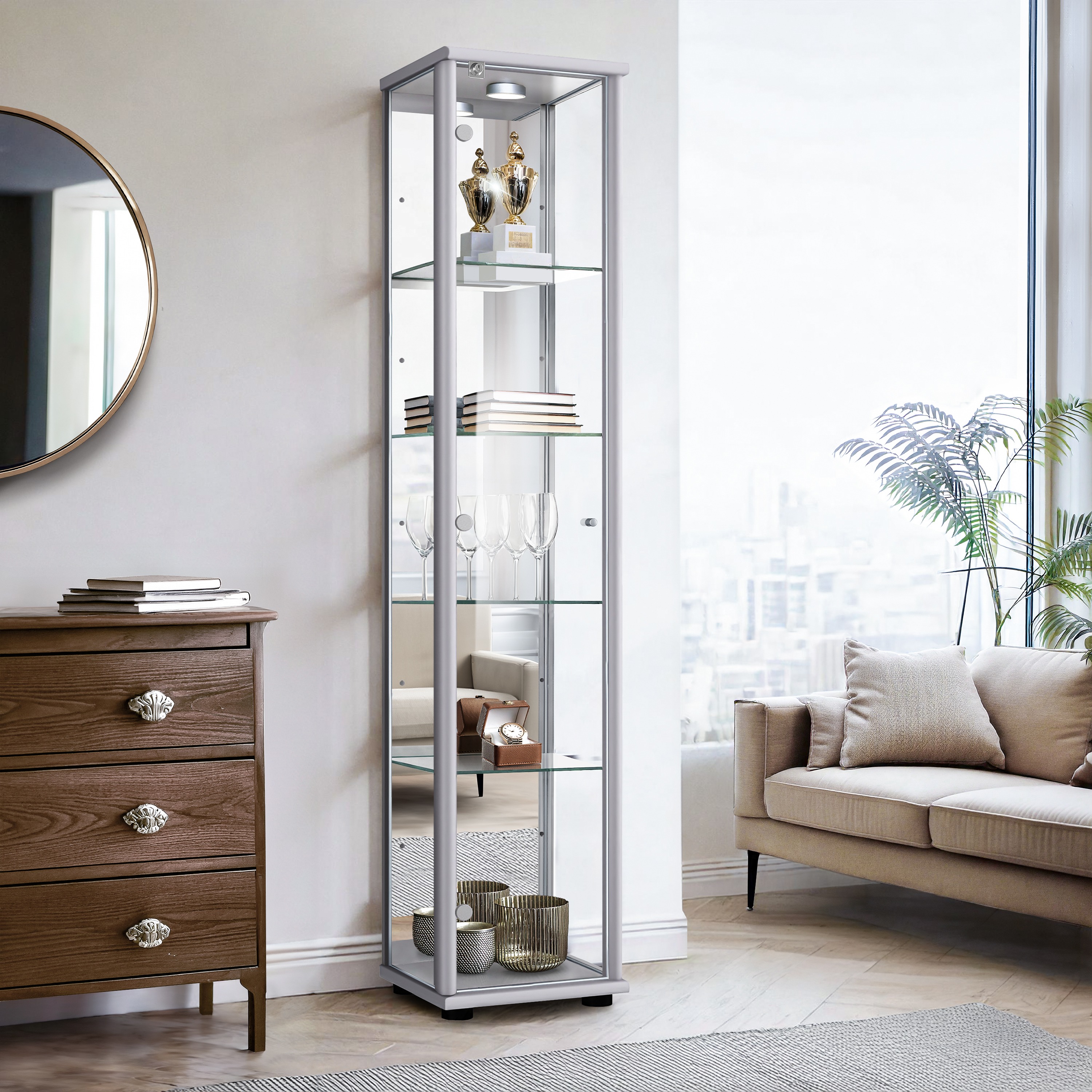 K-Möbel vitrína (176x37x33cm) - Made in Germany - vitrinasta omara srebrna s 4 nastavljivimi steklenimi policami, ogledalo, ključavnica & LED