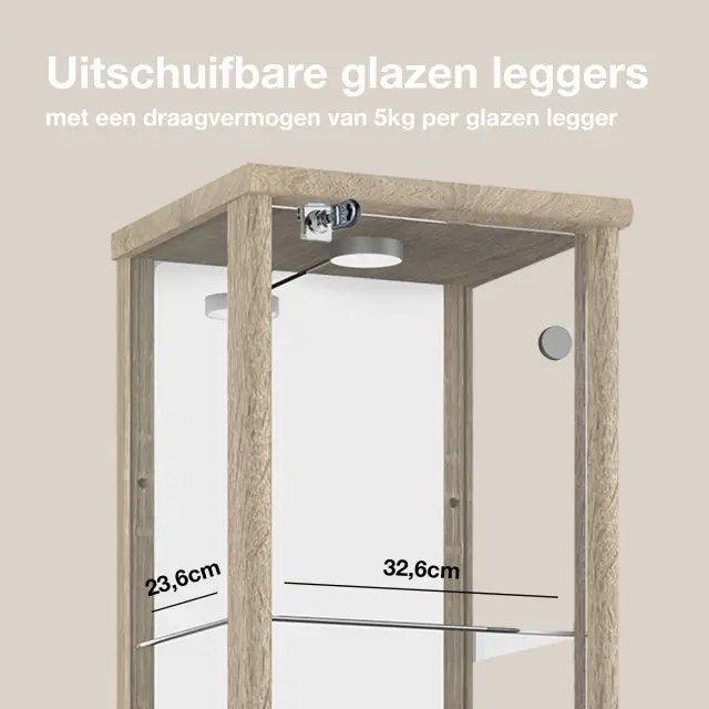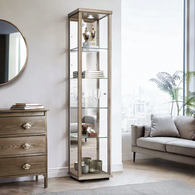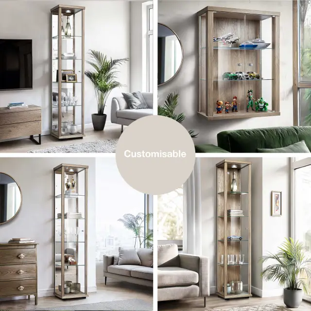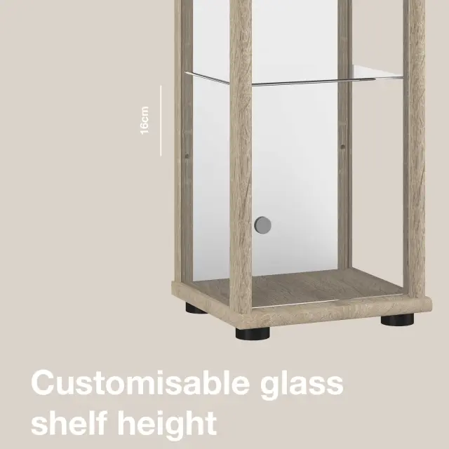 K-Möbel vitrína (176x37x33cm) - Made in Germany - vitrinasta omara sonoma hrast s 4 nastavljivimi steklenimi policami, ogledalo, ključavnica & LED