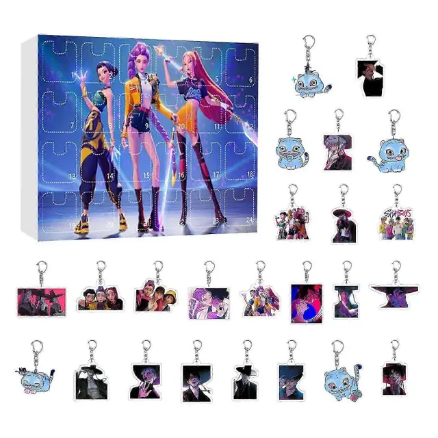 K-pop Demon Hunters Akrilni komplet adventnega koledarja – 24-dnevna darilna škatla presenečenja za oboževalce in otroke