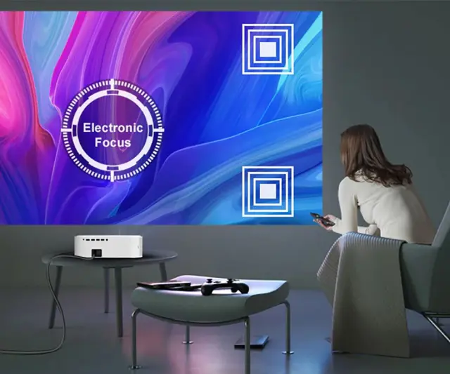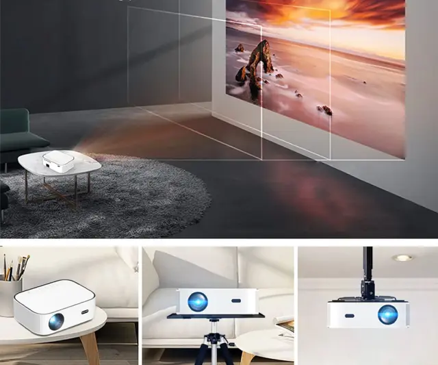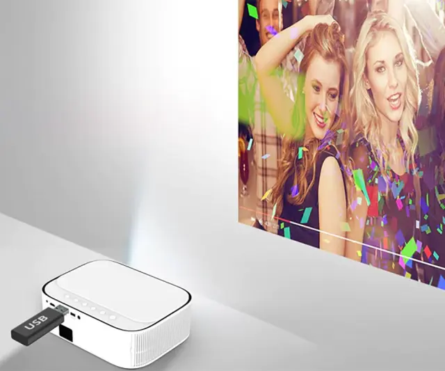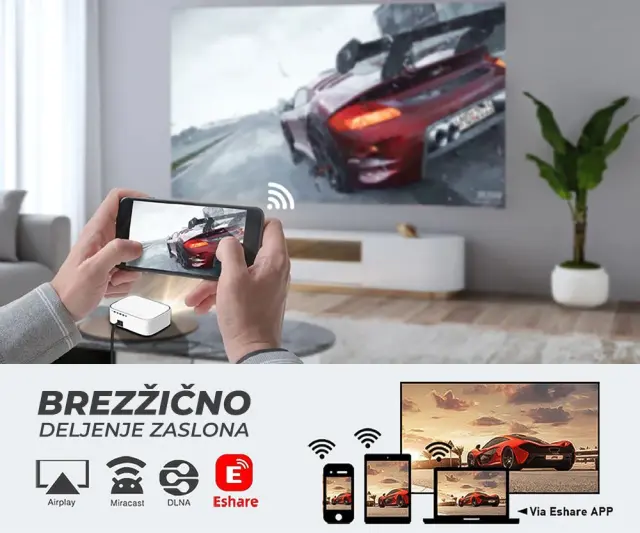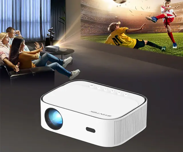 BYINTEK K45 Full HD 1080p, Android, WiFi, Bluetooth, 700 ANSI lumnov, dvojni zvočniki, max. 4K UHD, HDMI prenosni LED projektor bel
