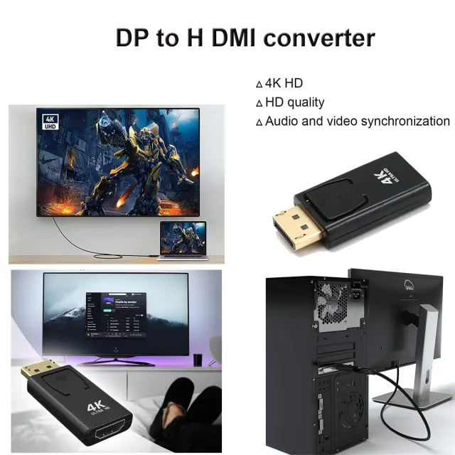 Široka združljivost: Omogoča povezavo naprav DisplayPort (osebni računalniki, grafične kartice) z napravami HDMI (televizorji, projektorji, monitorji), idealno za različne aplikacije, vključno z visokoločljivostnimi televizorji, projektorji in prenosniki.