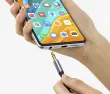 OJAČAN IN BREZ TANK – bakrena struktura kabla preprečuje zapletanje, najlonska pletenica pa ga naredi odpornega na manjše mehanske poškodbe in odrgnine . Konice so kovinske in pozlačene, zato so odporne proti koroziji in poškodbam.