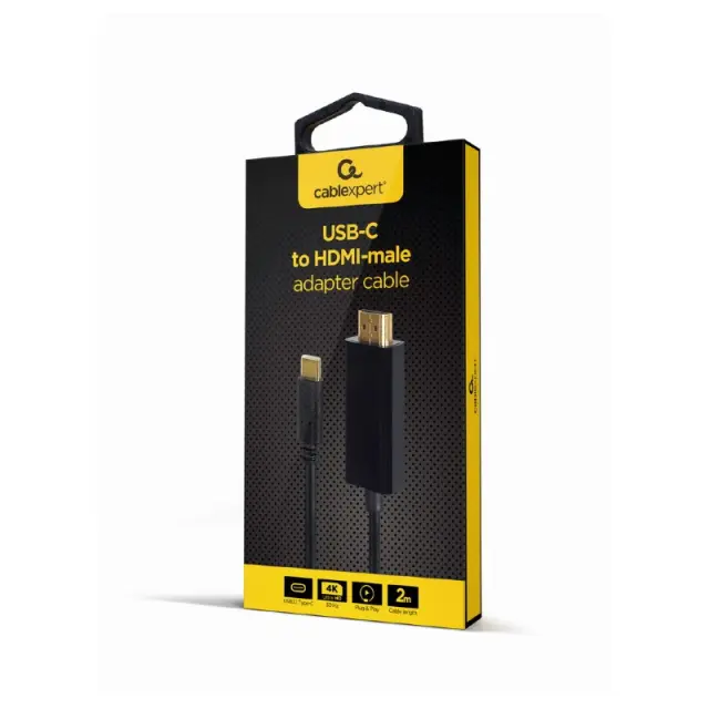 Kabel USB-C moški na HDMI moški. Omogoča pošiljanje avdio-video posnetkov iz (mobilne) naprave z vrati USB-C na zaslon HDMI, TV ali projektor. Deluje na kateri koli napravi, ki ima vrata USB Type-C, ki podpirajo video. Podpira max. ločljivost 4K*2K (30 Hz).