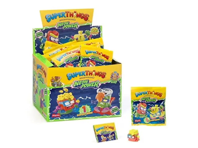 80 NOVIH LIKOV ZA ZBIRANJE – Odkrijte novo serijo SuperThings, Neon Power Več kot 80 novih likov za zbiranje: junaki in zlikovci, zlati in srebrni kapitani ter novi liki z neonskim učinkom. najti novo izjemno redko ColorFlash je Enigmin stari profesor in ima super neonsko moč