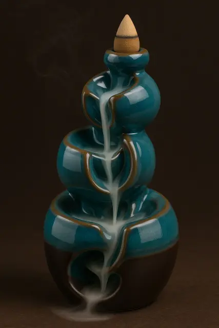 Keramični backflow kominek znamke MONDEX since 1986 je eleganten dekorativni dodatek, ki združuje aromaterapijo z edinstvenim vizualnim učinkom. Posebna zasnova omogoča, da se dim iz kadilnih stožcev ne dviguje navzgor, temveč se kaskadno spušča navzdol kot megličast slap, kar ustvari umirjeno in prijetno vzdušje v prostoru.
