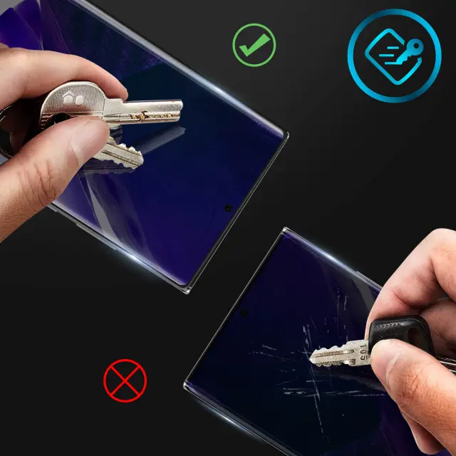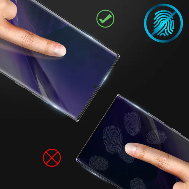 Folija za zaslon Samsung Galaxy Note 20 Ultra, ki šciti vaš zaslon pred udarci in praskami. Ta prirezana folija iz kaljenega stekla Samsung Note 20 Ultra ohranja barvno upodabljanje zaradi svoje prosojnosti in uporablja premaz proti prstnim odtisom.