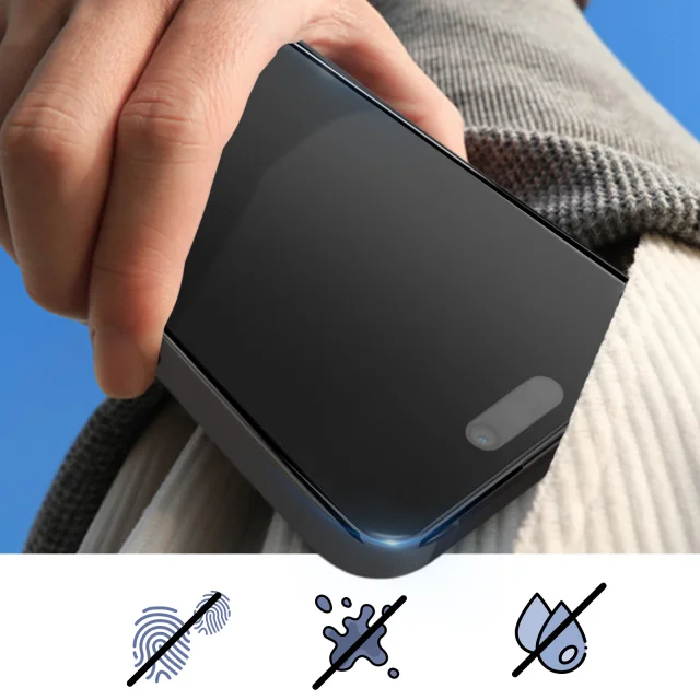 Kaljeno steklo trdote 9H, crna kontura str. iPhone 15 Plus in iPhone 15 Pro Max
