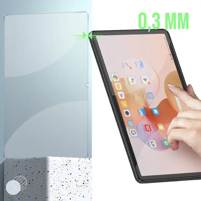 Ta zašcita zaslona Xiaomi Redmi Pad je izdelana iz prozornega in odpornega kaljenega stekla. Z indeksom trdote 9H je odporen na praske in ucinkovito absorbira udarce. Njegov oleofobni premaz proti prstnim odtisom nudi udobje pri uporabi.
