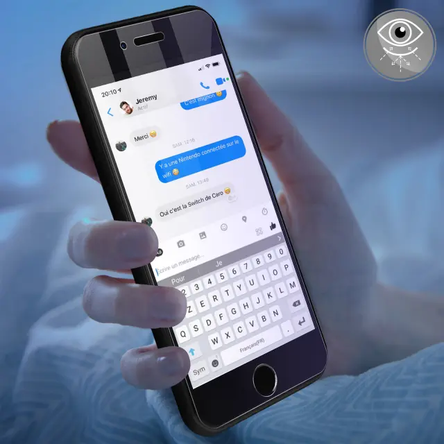 Kaljeno steklo proti modri svetlobi, 8 in 7. Ta zašcita zaslona iz kaljenega stekla blokira modro svetlobo. Njegova trdota 9H mu omogoca, da je odporen na udarce, praske in odrgnine.