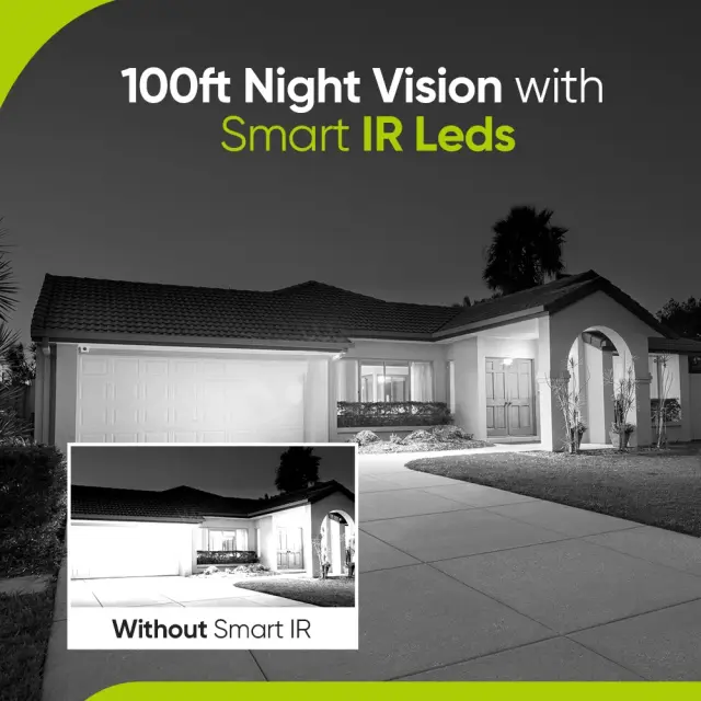 • Zanesljivo nočno gledanje: Z naprednimi IR LED diodami zagotavlja jasne slike pri nizki svetlobi, kar vam omogoča nadzor nad okolico kadarkoli.