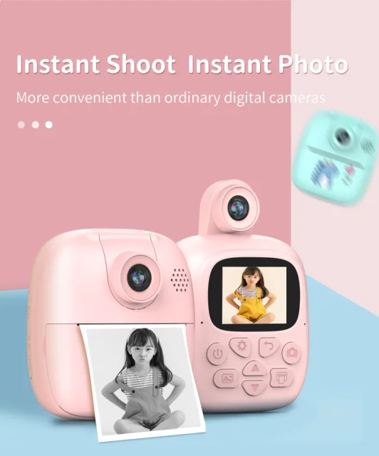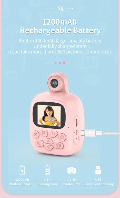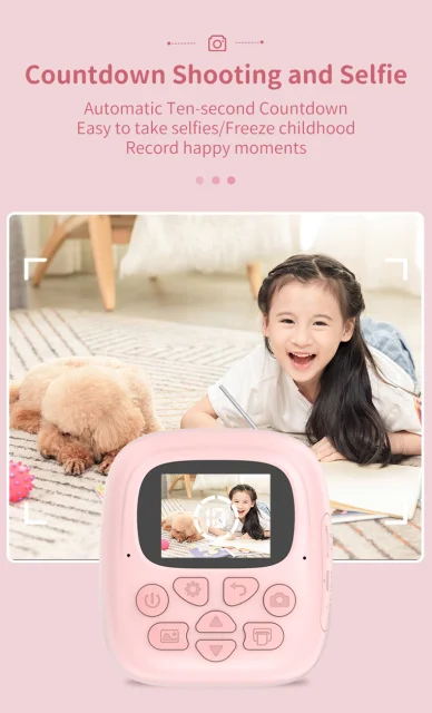 Široka uporaba: Tiskalna kamera je idealna za različne aplikacije, kot so nakupovalni seznami, tiskanje napačnih odgovorov, nalepk, besedilnih vaj, zapiskov, foto nalepk, spletnih strani, člankov in fotografij. Paket vsebuje fotoaparat, navodila za uporabo, certifikat o skladnosti, podatkovni kabel, papir za tiskanje in trak za lažje prenašanje.