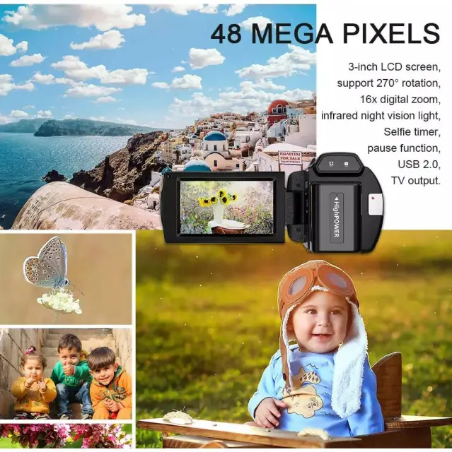 16-kratna povečava in povezava HDMI: Kamera ima številne odlične funkcije, kot so zaznavanje obrazov, 3,0-palčni zaslon, predvajanje in izhod HDMI. Lahko se poveže z računalnikom in podpira snemanje med polnjenjem ter snemanje v zanki.
