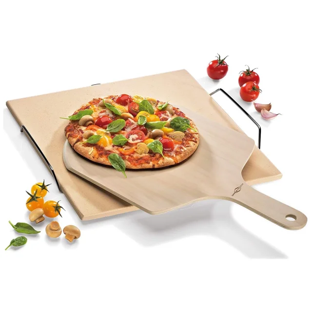 Kamnita plošča za pizzo na inox stojalu 38x35,5cm