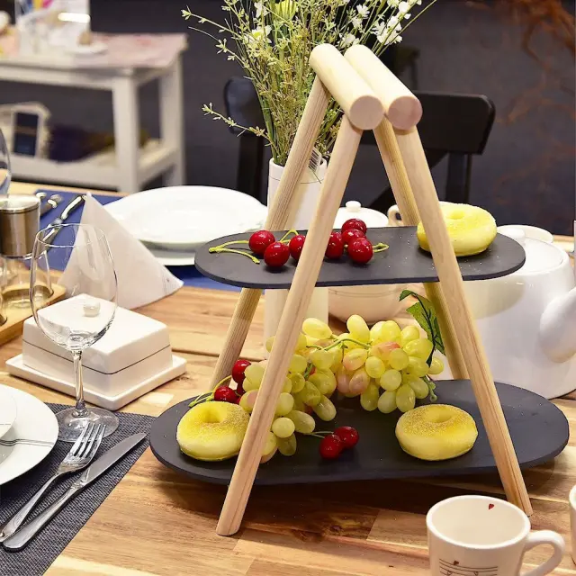 Kamniti leseni pladenj, 2-nadstropni, 41x24x38,5 cm