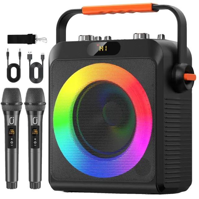 Karaoke naprava, 2 brezžična mikrofona, vgrajen zvočnik, prenosna zasnova -črna