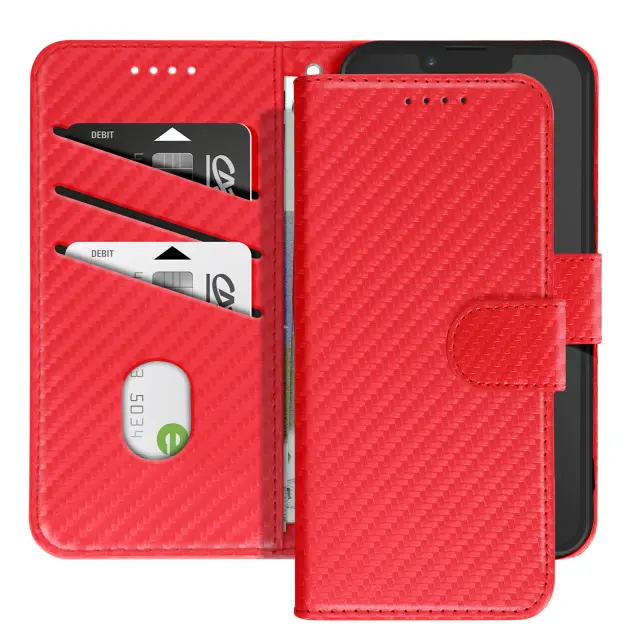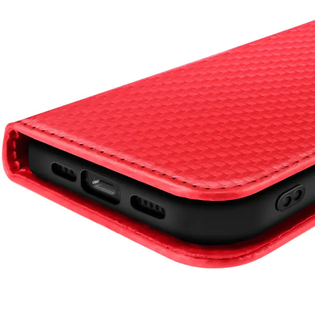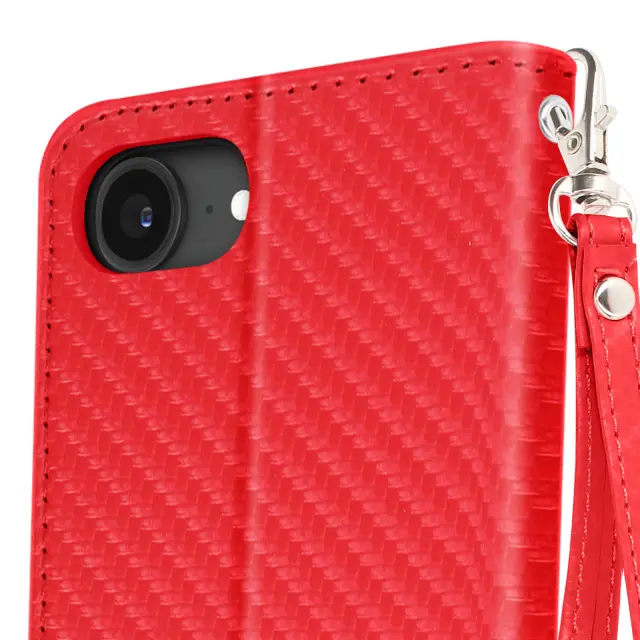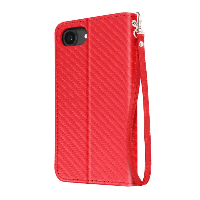 Karbonsko ohišje za iPhone 16e Denarnica Podporni trak, Rdeča