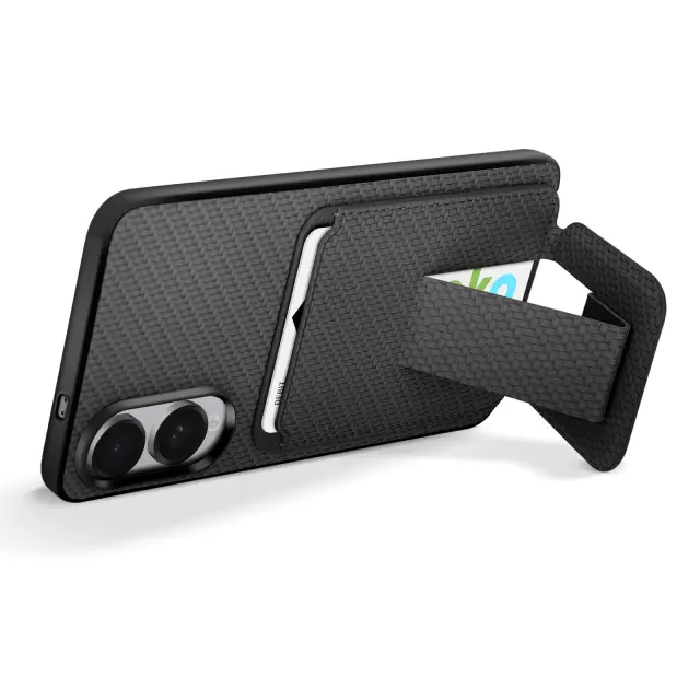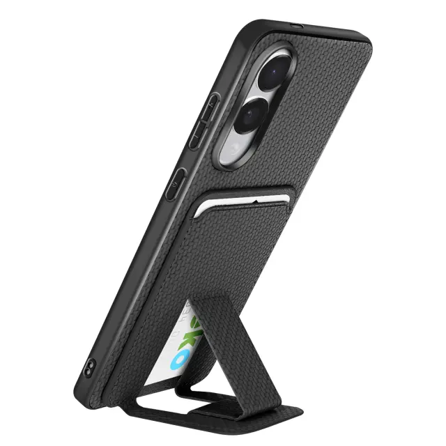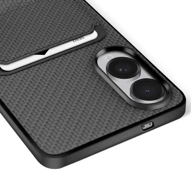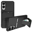 Karbonsko ohišje za Samsung S25 Edge Silikonsko držalo za kartice, Črna