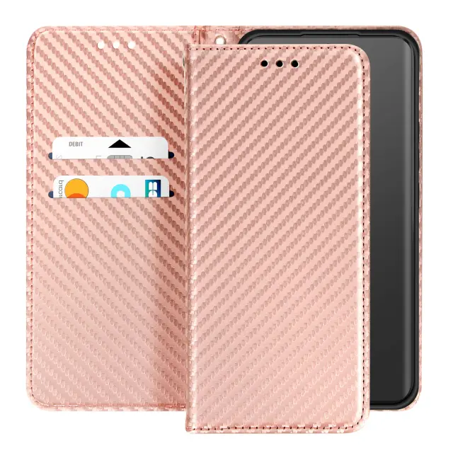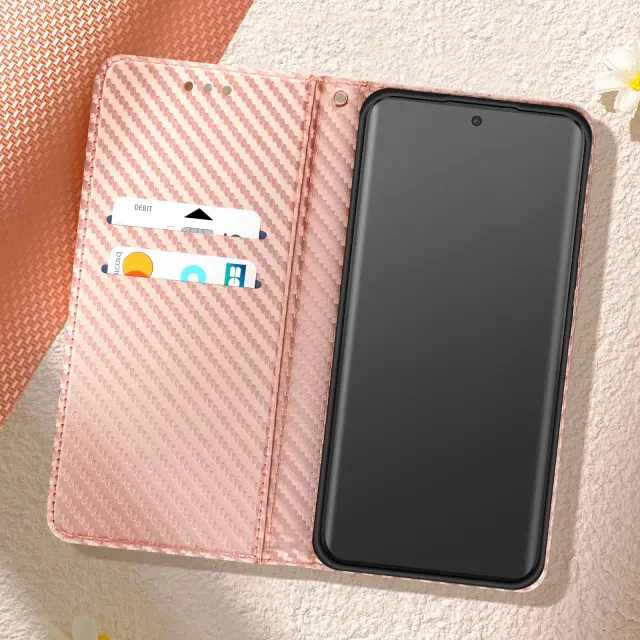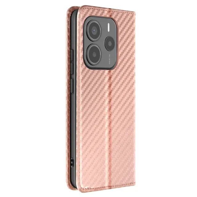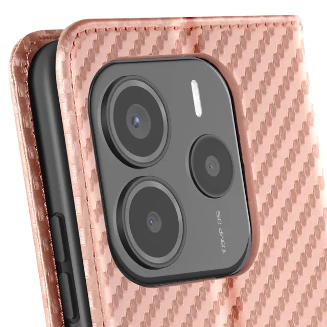 Karbonsko ohišje za Xiaomi Redmi Note 14 5G Wallet Video držalo, Šampanjec roza