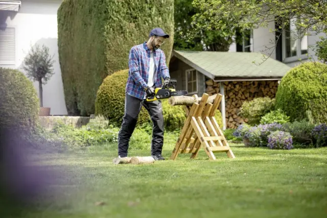 Kärcherjeva akumulatorska verižna žaga CNS 18-30 Battery je zelo lahka in ima idealno dolžino meča, zato je odlična izbira za udobno in vsestransko uporabo pri negi dreves. Velika hitrost verige prispeva k temu, da delo poteka hitro in brez napora. S sistemom za napenjanje verige in samodejnim mazanjem verige je upravljanje akumulatorske verižne žage zelo preprosto. Zaradi kombinacije zavore verižne žage in dvojne sprostitve je posebno varna. Obseg dobave vključuje napravo, meč, verigo, ščitnik meča, ramenski pas in posodo z oljem.