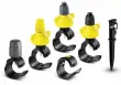 Komplet šob je dopolnitev sistema Kärcher Rain System® in vsebuje 5 kapljalnih manšet, 10 tesnilnih in pršilnih manšet (4x 90°; 4x 180°; 2x 360°) in 5 klinov za pritrjevanje. Kapljalne in pršilne manšete lahko namestite na poljubno mesto na cevi sistema Kärcher Rain System®. Montaža manšet je enostavna, hitra in zanjo ne potrebujete orodja. Vgrajeno iglo odprte manšete enostavno zabodite v cev. Ko manšeto zaprete, jo s tem zanesljivo pritrdite na cev. Količino vode na kapljalni manšeti lahko poljubno nastavite (0-10 l/h). Nastavitev kota pršenja je s pomočjo vrtljive glave manšete nastavljiva vertikalno in horizontalno. Na šobi lahko glede na potrebe nastavite količino vode od 0 do 55l/h in tako zmanjšate porabo. Nepotrebne odprtine na cevi lahko zaprete s pomočjo tesnilnih manšet. Kärcherjev Rain System® združuje prednosti kapljalnega (Micro-Dripping) in navadnega zalivanja, deluje s tlakom do 4 bare in ga lahko individualno prilagodite skoraj za vse tipe vrtov.