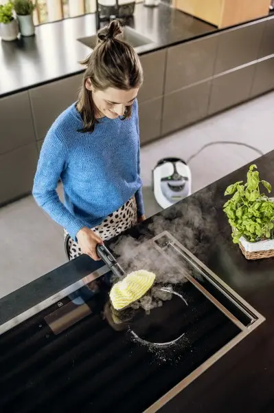 Priklop tople vode dodatno k pari. Tako boste umazanijo lažje raztopili in jo enostavno odplaknili. Za še boljše rezultate čiščenja.