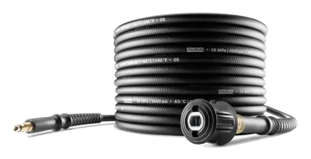 Podaljšek visokotlačne cevi za pištolo s Quick Connect adapterjem. 10 m dolg podaljšek za visokotlačno cev skrbi za visoko prilagodljivost in povečuje radij delovanja visokotlačnega čistilnika. Enostavno priklopite med pištolo s Quick Connect spojko in visokotlačno cev - takoj boste delali še bolje. Robustna cev DN 8 je ojačana s tekstilnim pletivom in ima tudi zaščito pred pregibanjem cevi ter medeninasto spojko za dolgo življenjsko dobo. Podaljšek visokotlačne cevi prenese tlak do 180 barov in je primeren za temperature do 60 °C. Podaljšek cevi lahko seveda uporabljate tudi s čistili. Podaljšek je združljiv z Kärcherjevimi visokotlačnimi čistilniki razredov K 3 - K 7 z adapterjem Quick Connect.